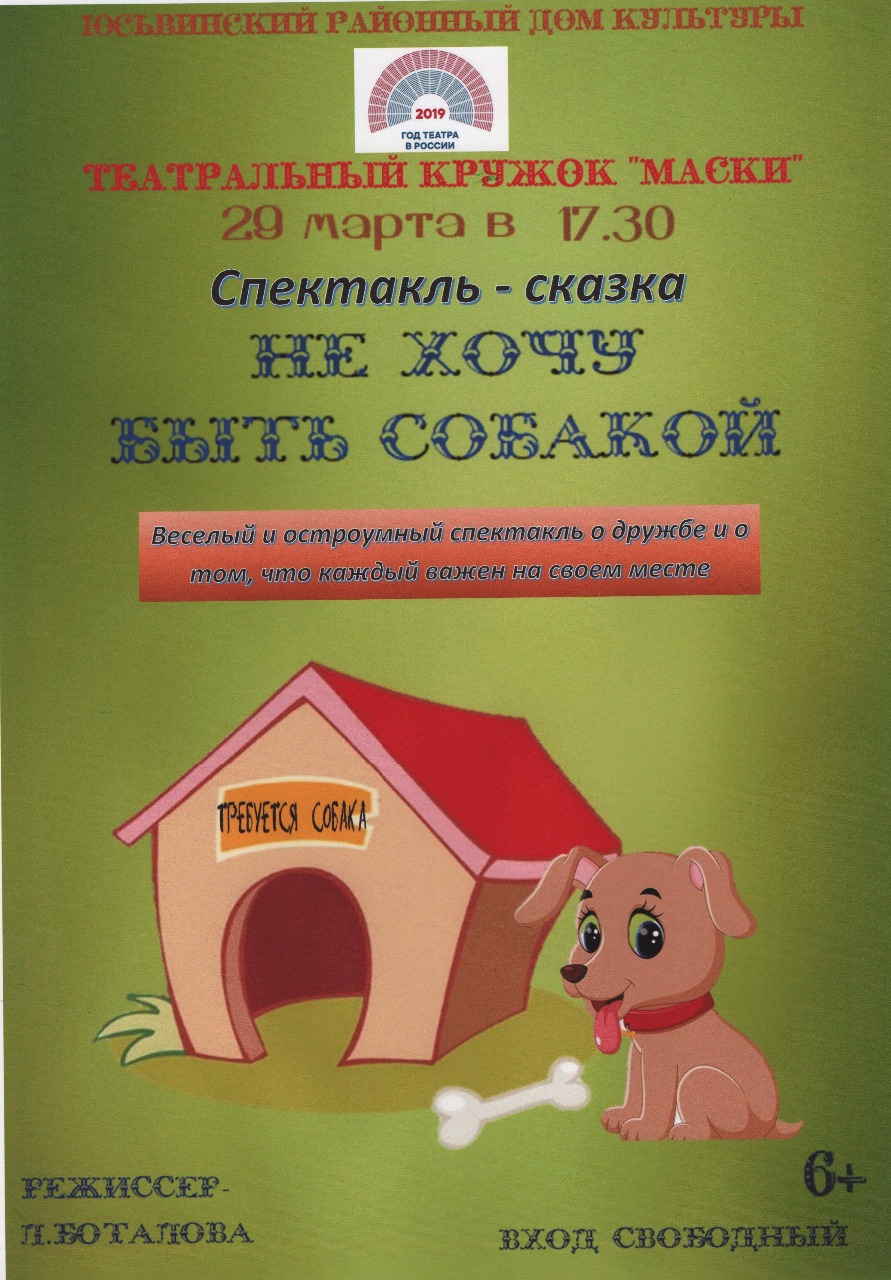 29 марта в 17:30 приглашаем на спектакль-сказку "Не хочу быть собакой". Зрительный зал РДК. Вход свободный!
